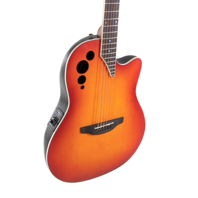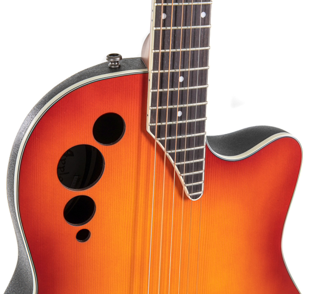 Like all Elite models, they feature Ovation’s signature Multi Soundholes. This innovative construction uses several small openings at the edge of the guitar top instead of a single, central soundhole.