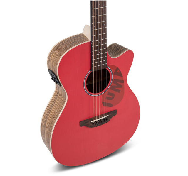 The Jump series differs from other Applause guitars in that it features a traditional wooden acoustic guitar style instead of the classic Lyrachord roundback body.