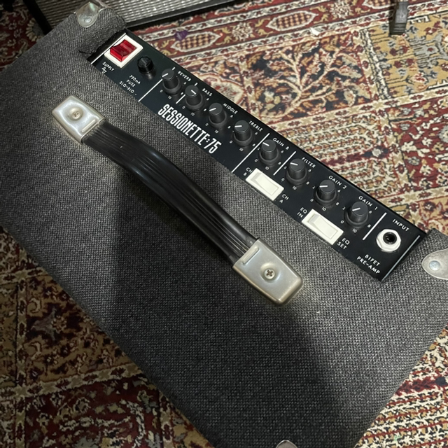 The Sessionette 75 is a highly regarded British-designed solid-state guitar amplifier from the 1980s, manufactured by Award-Session. This one is a 1985 model with fabric cover. Known for delivering tube-like warmth, reliability, and portability, it became a staple for working musicians, featuring 75 watts of power, two channels, built-in reverb, and 1x12" speakers. Also includes additional 1x12” Session extension cabinet.