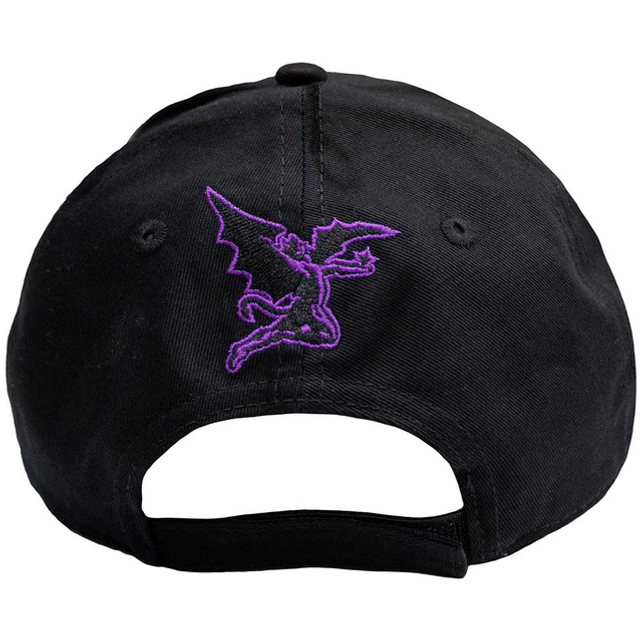 An official licensed unisex cotton Baseball Cap featuring the Black Sabbath 'Demon & Logo' design motif. This high quality headwear is available in a black colourway.