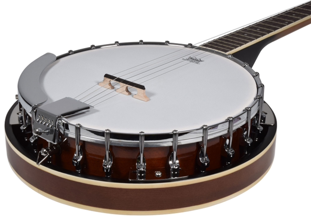 Traditional banjos for bluegrass and finger picking styles. Body rim and resonator are all mahogany, with a mahogany neck married to a kabukalli fingerboard. A coated drum head forms the sound board and supports a floating bridge. Tuning is served by open geared tuners. Fully featured instruments for folk and country music genres.