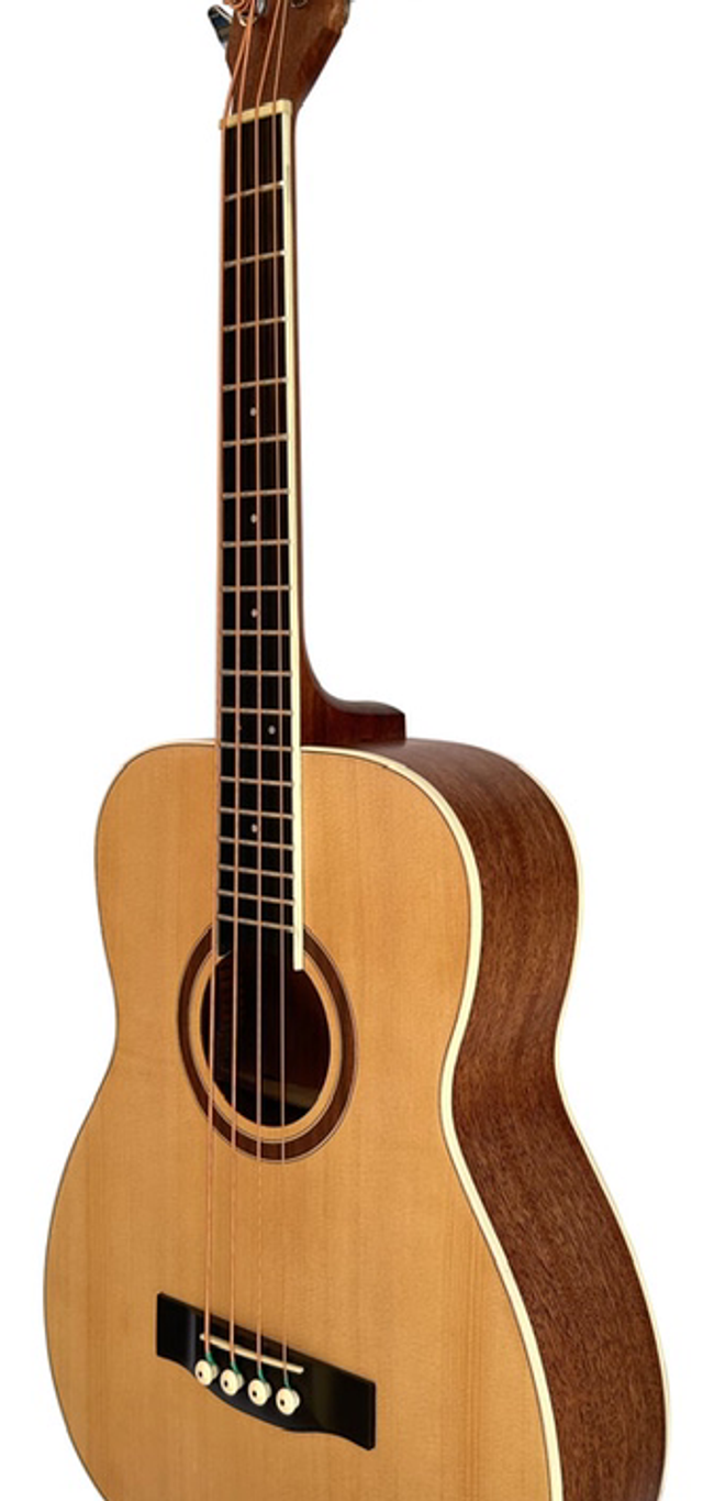 Compact acoustic 4-string bass guitar with a short-scale neck and OM-style body. A laminated spruce top lets through the brightness of the strings to match the full-bodied sound of the laminated mahogany back and sides. Equipped with a 3-band active EQ which has a built-in tuner, the BOM-40 offers a convenient package for unplugged performances, practice and even as a travel companion, thanks to its diminutive size. Nevertheless, the BOM-40 gives pro-level playability and sound quality for the experienced player and is an excellent addition to any bass player's collection.