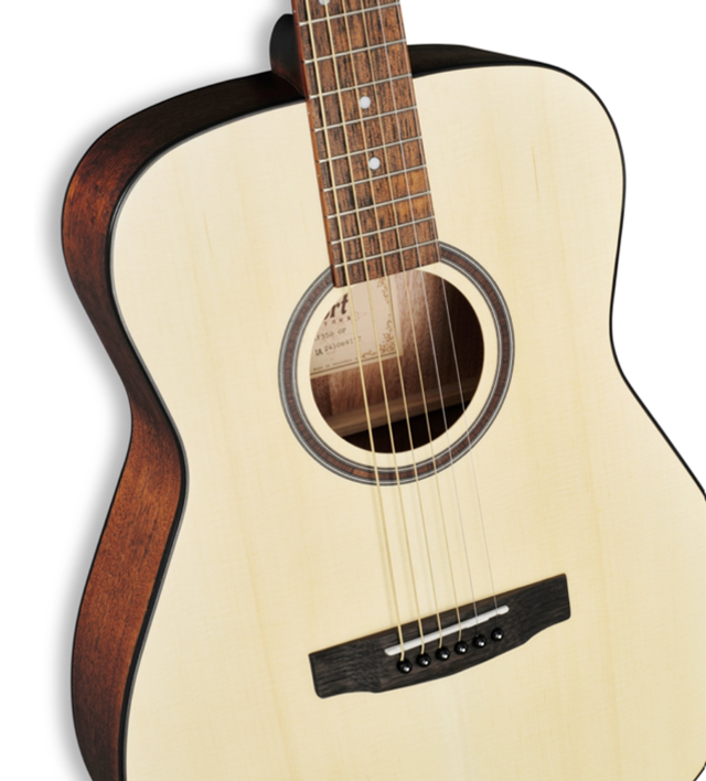 Construction: Dovetail Neck Joint Body: Concert Nut Width: 43㎜(1 11/16") Top: Spruce Back & Sides: African Mahogany(Okoume) Neck: Mahogany(Palaquium) Fretboard: Merbau Frets: 20 Die Cast Tuners Wooden Rosette Bridge: Merbau Advanced X-Bracing