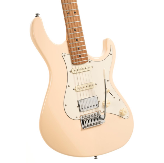 Specifications: Construction: Bolt-on Body Material: Poplar Scale Length: 25.5” (648mm) Neck Material: Roasted Maple Neck Shape: C Shape Neck Thickness: 1F : 21.0mm, 12F : 22.0mm Fingerboard Material: Roasted Maple Fingerboard Radius: 9.5” (R240) Number of Frets: 22 Fret Type: Medium (2.4x1.2), Nickel Silver Inlay: Black Dot Nut Material: PPS Nut Width: 1-21/32” (42mm) Truss Rod: Two-way Adjustable Tuning Machines: Die-Cast Bridge: 6-Point Tremolo Pickup Configuration: HSS Pickups: Cort® Powersound HSS Pickup Set, (Chome Covered Humbucker) Controls: 1-Volume, 1-Tone, 5-Way Switch Hardware: Chrome