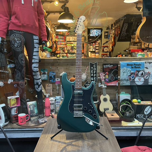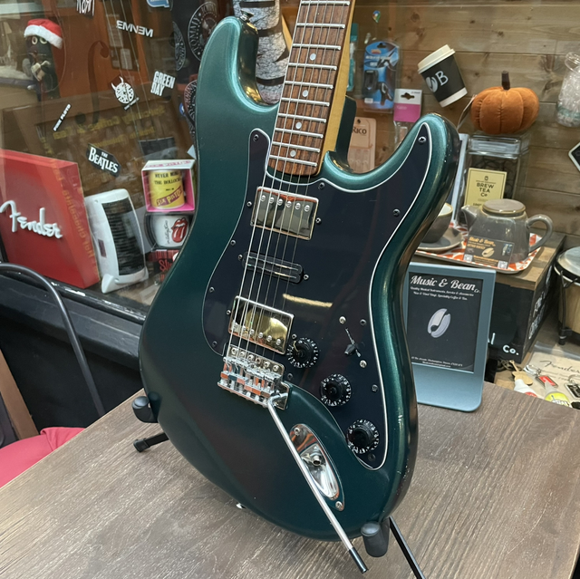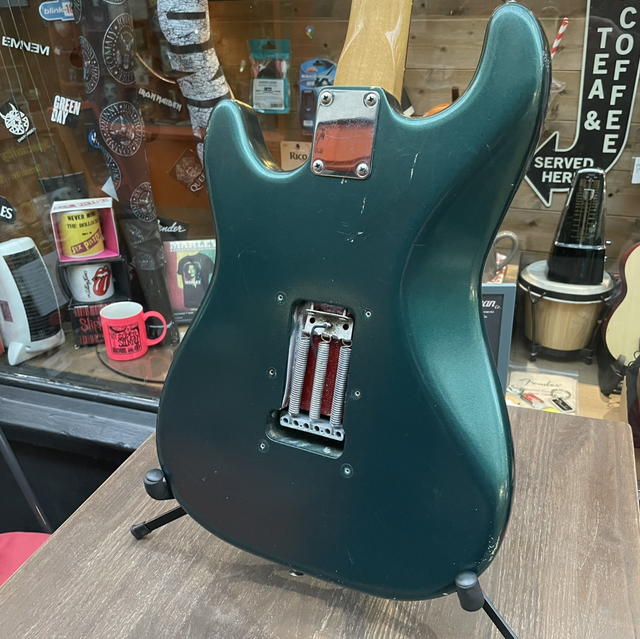 The body has been refinished in a satin racing green, with a good amount of play marking.