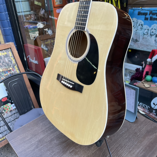 Dreadnaught Acoustic Guitar with after market internal microphone fitted via side mounted input socket.