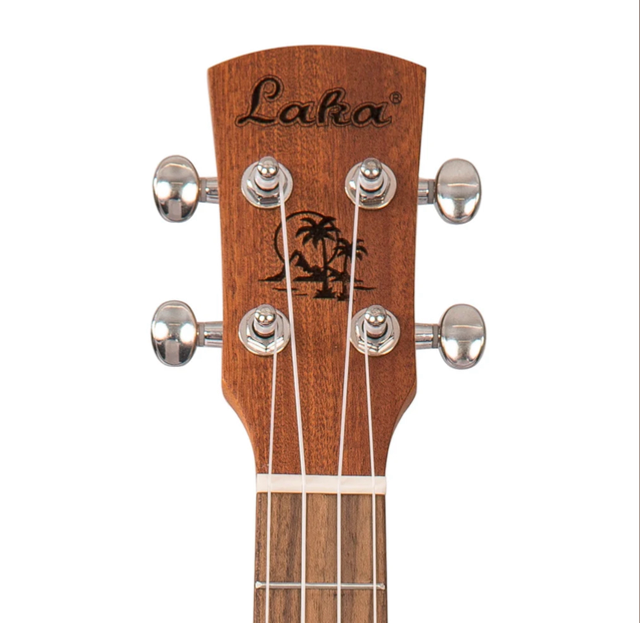 Sapele is the tonewood choice for the top back and sides, specifically chosen for its warm, woody sound, delivering a strong low-end, solid mids and natural high-end response. Features also include an intricate laser etched palm tree rosette and headstock design, with Laka motif and chrome plated die-cast tuners.