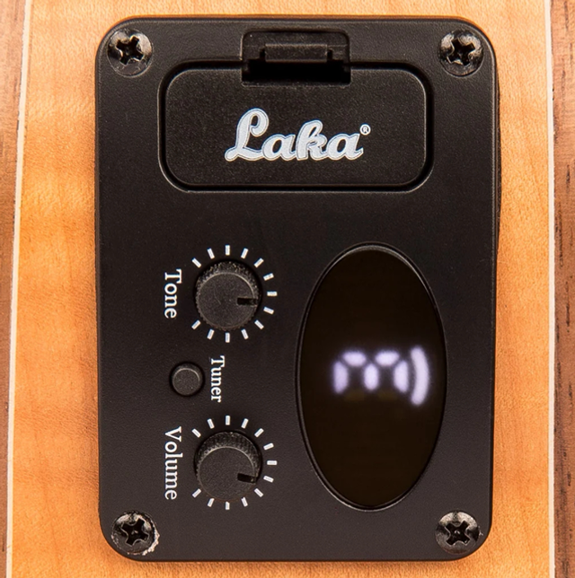 In addition to these striking aesthetics, this beautiful electro-acoustic with a sloping body cutaway delivers natural brightness, warmth, sustain and clear note separation in abundance, with Laka’s own preamp and pickup system,