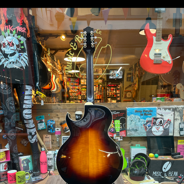 This guitar has been through our workshop, strung with Flatwound Strings and fully setup.