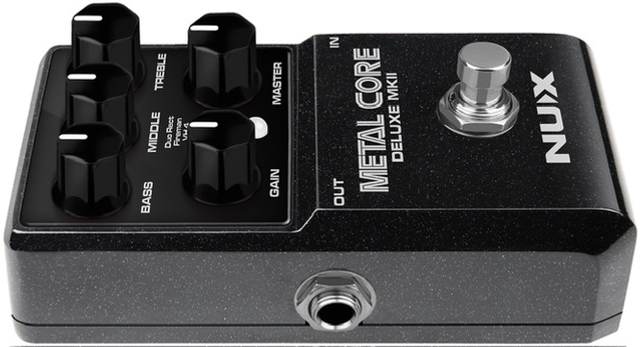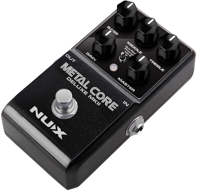 Evolving from the popular Metal Core Deluxe pedal, the mkII version now has 3 selectable amplifier models based on much-revered high gain valve amplifiers. Now with an additional Middle control, the 3-band EQ pairs with Gain and Master to offer a full completement of real amplifier controls, with settings stored into each of the 3 amp models for fast recall. Metal Core Deluxe mkII goes a step further to include IR cabinet simulation, meaning that it can be used directly into a full-range PA system, or without IR simulation into the front of a guitar amplifier as a hard-edged drive pedal. Whichever wiring method is used, Metal Core Deluxe mkII delivers the full breadth of metal tones for hard rock to thrash.