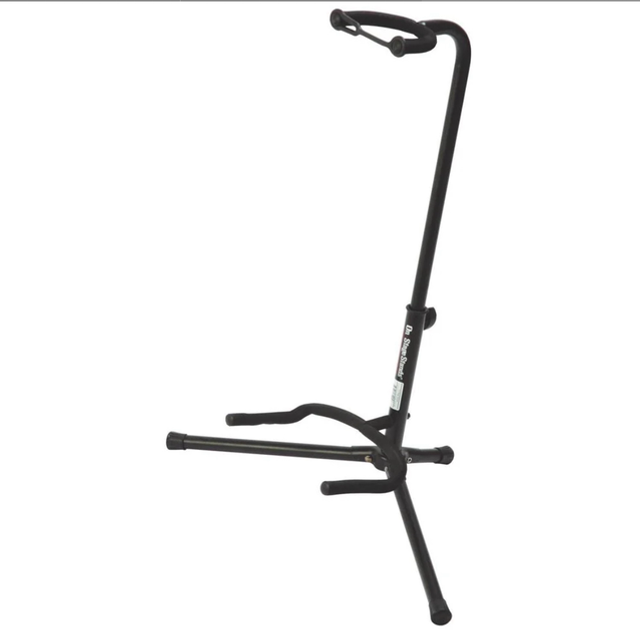 combines a special formula velveteen rubber with extra thick tubing. It features a removable lower stepped yoke, security strap on the upper yoke, and adjustable height. Perfect for any guitar.
