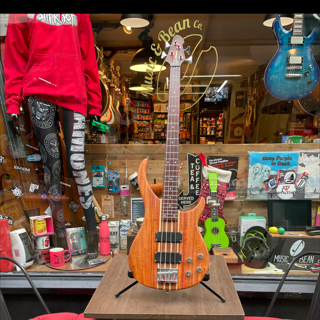 Equipped with passive humbucking pickups, the Zephyr offers a broad tonal range suitable for various musical styles. Its 34-inch scale length and 24-fret rosewood fingerboard provide a comfortable playing experience, while the double-cutaway body design allows easy access to higher frets. The bass is also noted for its aesthetic appeal, often showcasing natural finishes that highlight the wood’s grain.