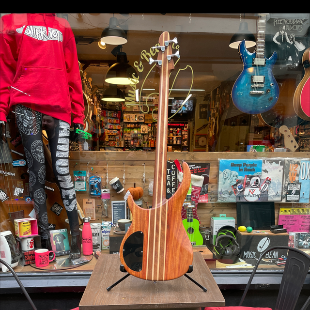 The Peavey Zephyr is a distinctive bass guitar known for its exceptional craftsmanship and tonal versatility. Produced in the late 1990s to early 2000s, it features a neck-through-body construction with a 7-piece neck, typically combining maple and mahogany, and body wings made from bubinga or imbuia (Brazilian walnut). This design enhances sustain and resonance, contributing to its warm, rich sound.