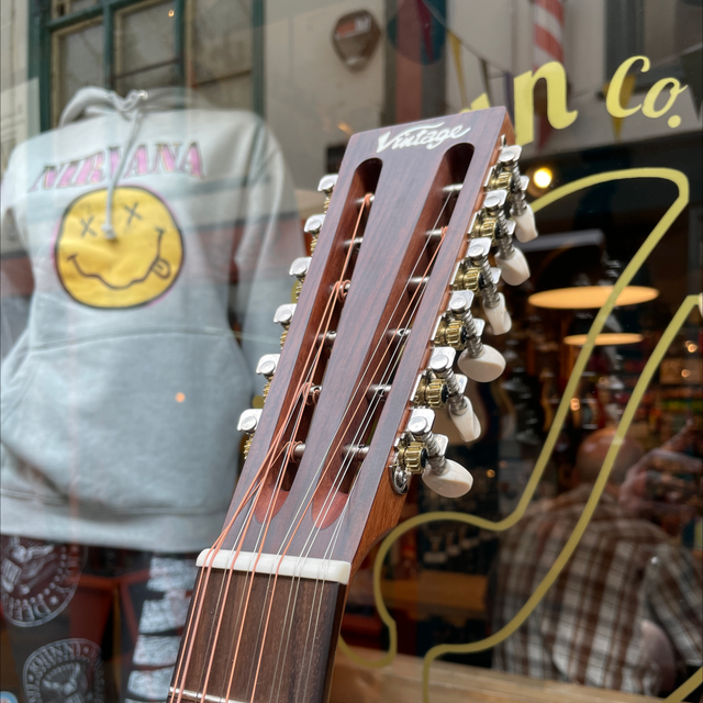 Designed by English guitarist and blues historian Paul Brett, the Vintage 'Fret Dancer' Series of acoustic guitars are launched in tribute to the late Johnny Joyce, a legend himself on the British folk and blues music scene, who dedicated his career to the 12 string guitar.