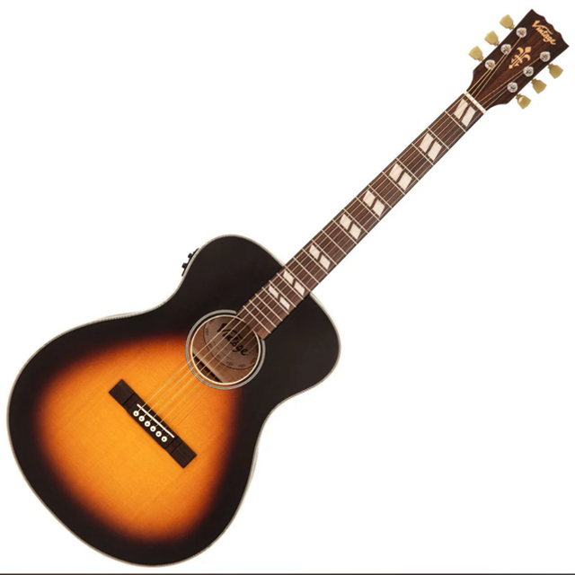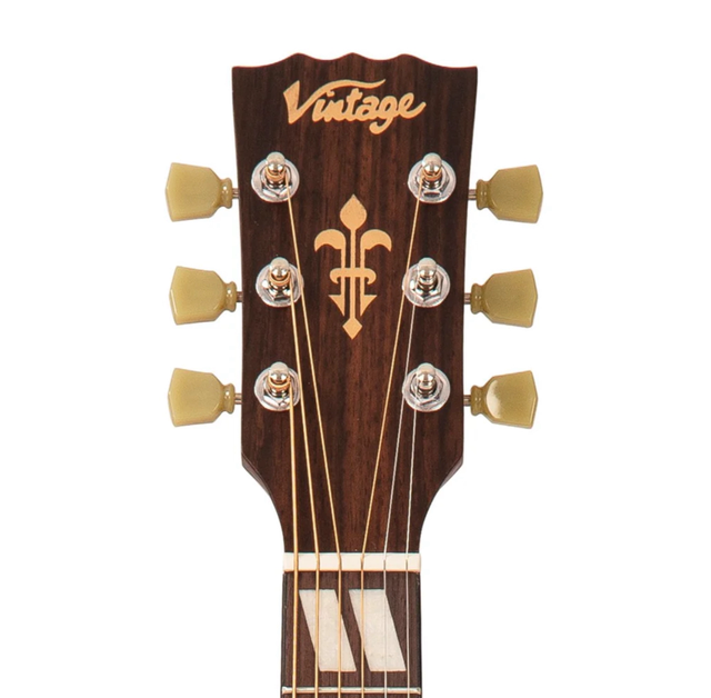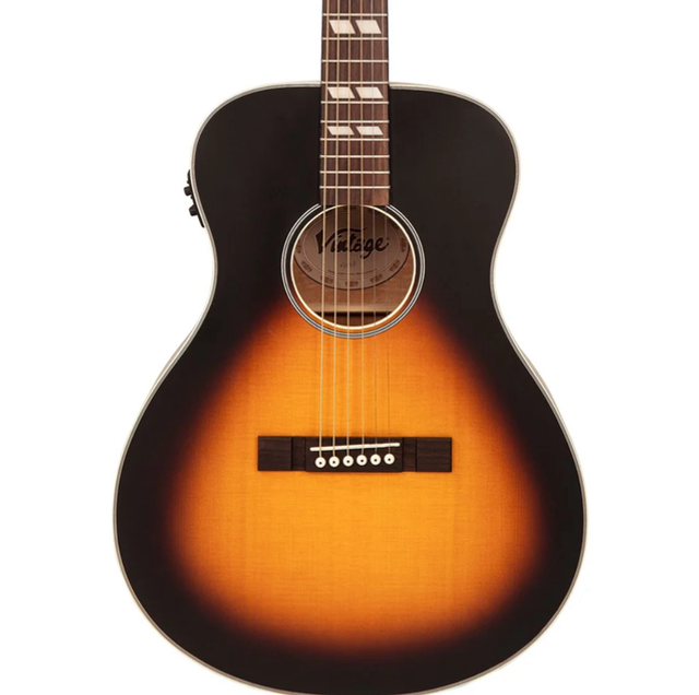 With a beautiful satin top coat over a gorgeous Vintage Sunburst finish, the Vintage Historic Series Folk electro-acoustic guitar, radiates class in every sense of the word.