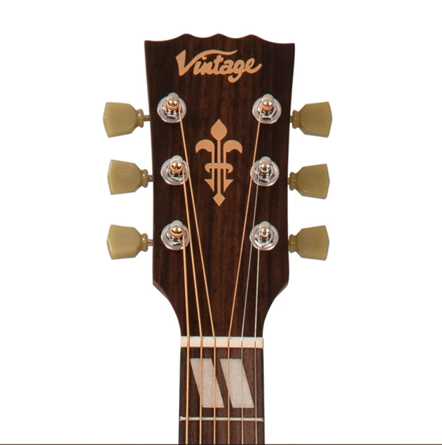 With a beautiful satin top coat over a gorgeous Vintage Sunburst finish, the Vintage Historic Series electro-acoustic Folk acoustic guitar, radiates class in every sense of the word.